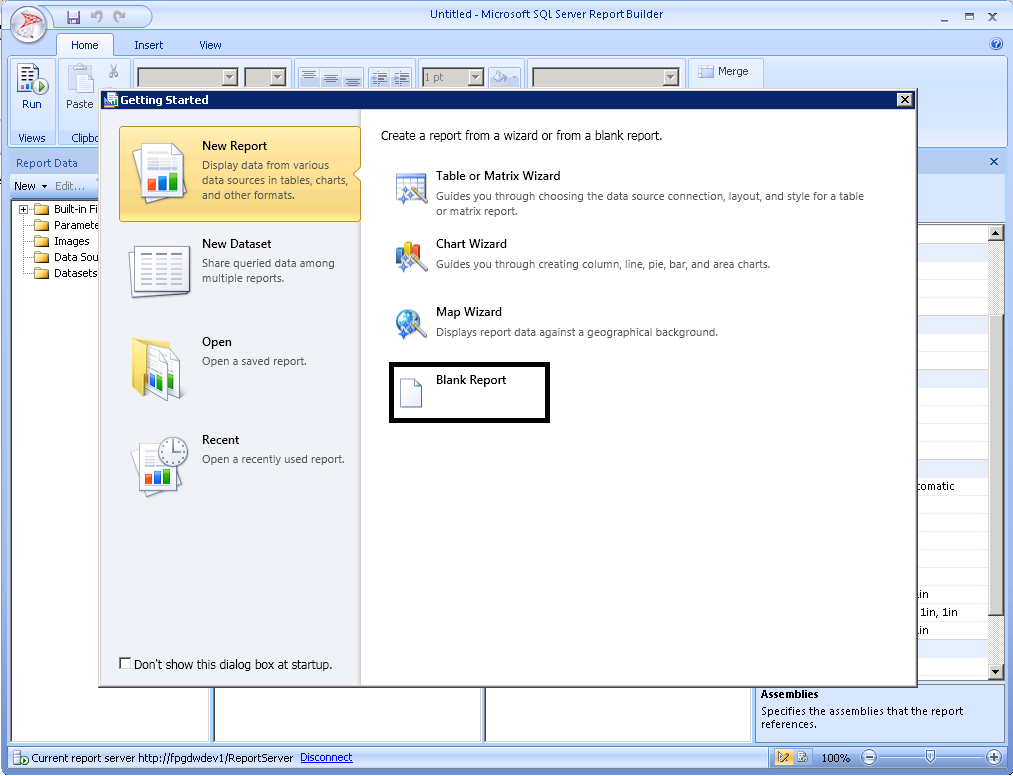 When you open the Report builder it will ask to Report Templates (Tablix, Blank etc.) as like crystal report. From the list select the Blank template and start to work as normal BIDS environment.