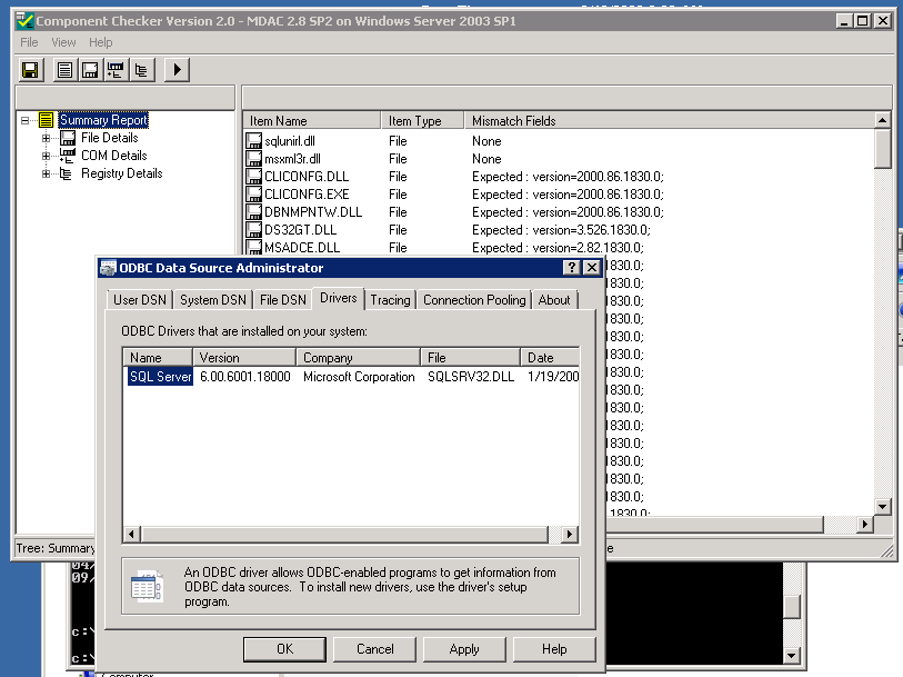 I noticed that I have only MSSQL Drivers in the ODBC Data Source Administrator -> Drivers tab. I looked at another one of my 2008 servers and it is populated with all the necessary ODBC drivers. How do I add them? Any idea on why they were not included originally?