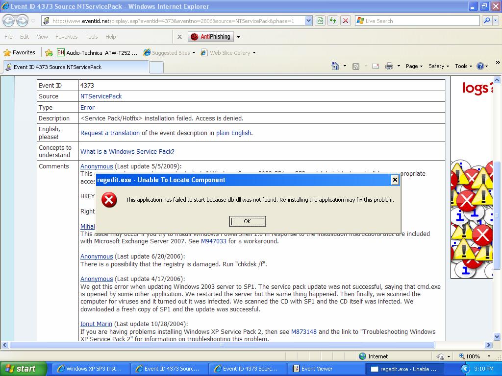 I am having an issue installing Service pack 3 after a repair install of windows XP professional.