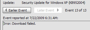 2009-05-04 Â Â 08:06:57:205 Â Â 1172 Â Â f04 Â Â AU Â Â Â # WARNING: Download failed, error = 0x80244019