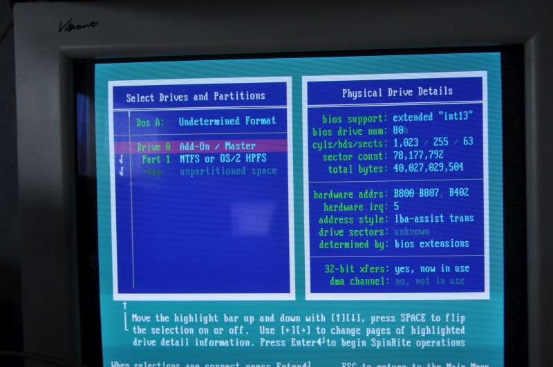 i connect a Maxtor 40 Gb IDE drive to an ASUS board P5GD2-X with a 3.0 GHz CPU and 1 GB ram and start Spinrite it claims a running time of 4.35 hours - i checked in the bios with the setting UDMA to auto; when sset to UDMA5, it claimed 5.22Hrs