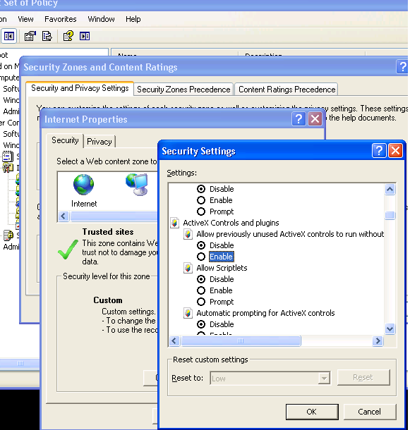 I have a program that is used by several people operating several computers throughout the day, and this application my be installed on the computer and then the Active X control must be installed for each user. Â The only problem is, not all users are admins and do not have the needed access to install the Active X control. Â If you run IE as admin and install the Active X control it only puts the keys in for the Admin and the user still cannot get access to the web application. Â Also if the user does not access a computer for several weeks it seems to remove the keys, so I need these keys to reload each time the user logs into a comuter. Â With over 500 users needing to access this application in 20 different locations on a number of computers, this becomes a nightmare..... Â I have been looking at ways to fix this issue and so far I have found one that works, but it has some problems.