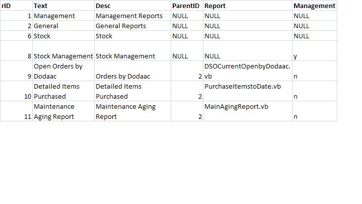I was able to get the treeview to half way work.... If I remove the ParentID it displays my reports in a list....