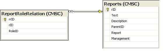 SELECT CMSC.Reports.Text, CMSC.Reports.Description, CMSC.Reports.Report, CMSC.Reports.ParentID, CMSC.ReportRoleRelation.rID FROM CMSC.Reports INNER JOIN CMSC.ReportRoleRelation ON CMSC.ReportRoleRelation.rID = CMSC.Reports.rID WHERE (CMSC.ReportRoleRelation.RoleID = @param)