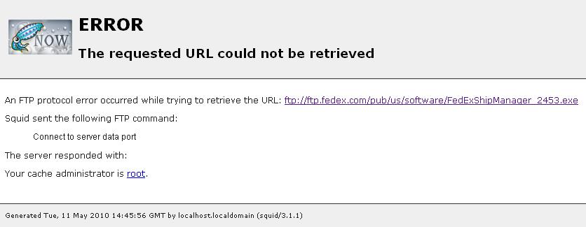 1273604907.384 Â Â 382 172.17.137.105 TCP_MISS/502 4089 GET ftp://ftp.fedex.com/pub/us/software/FedExShipManager_2453.exe:21Â - DIRECT/199.81.203.40 text/html