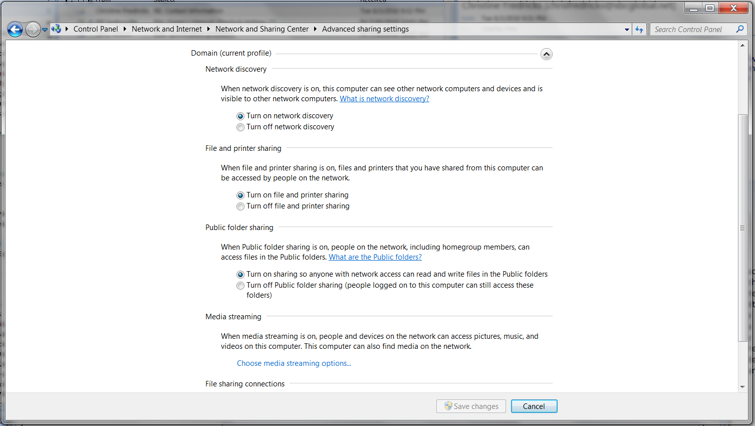 Are there additional settings outside of Control Panel > Network and Internet > Network and Sharing Center > Advanced sharing settings?