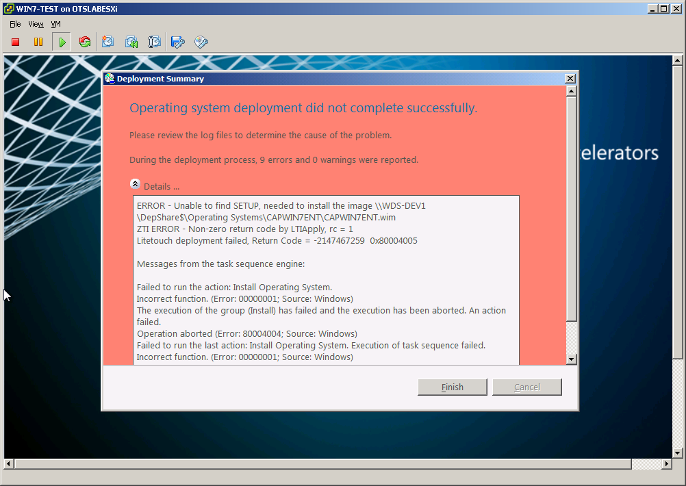 Now I am running the same litetouch.vbs script to install the reference image on the client.