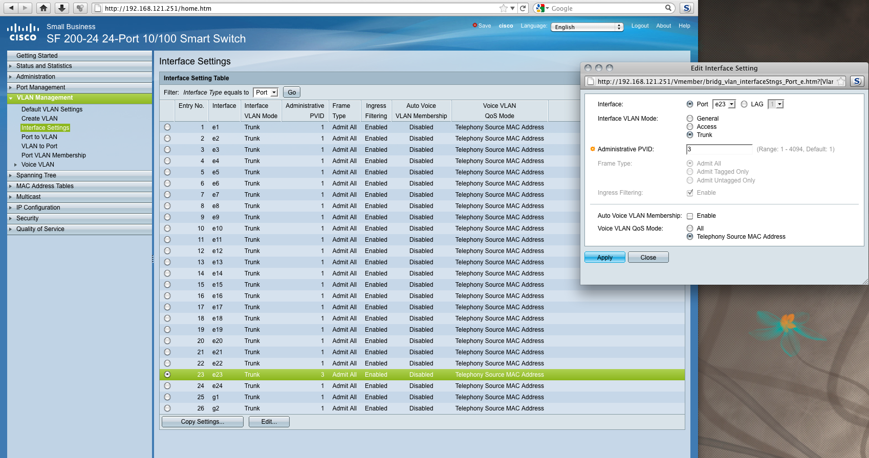 At the port to vlan page e23 is turned off with the current settings.