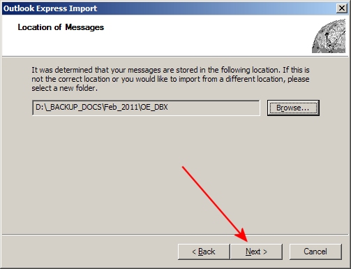I cannot recall what comes next, but I didn't want to proceed as I am doing this on my current Outlook Express and don't want to import from an old backup. It should work if you got this far and you should be guided if it has additional steps.Close and reopen Outlook Express once the import wizard completes.