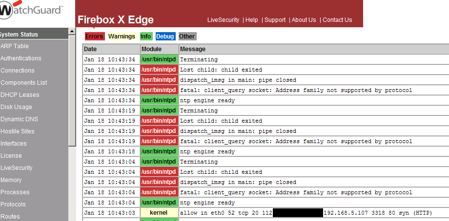 So I used the existing common packet filters for HTTP, FTP and Telnet. Now the logs are showing that the traffic is being let through, but closely followed by a number of errors - see attached screenshots.