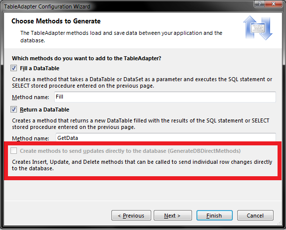The thing I don't understand is : if I create the dataset just by checking one table and then drag and drop to create a datagrid, it's working. But I soon as I configure de dataset with some SQL statement, it can update anymore.