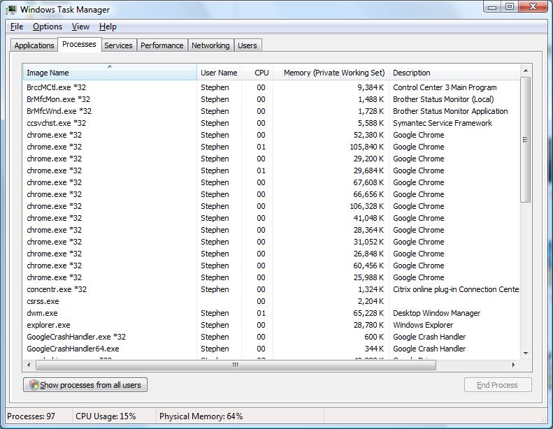 For Chrome, I have three Windows open but there's 13 processes running, what's going on there ?