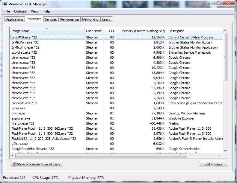 Also, when I re-booted this morning (after the BSOD), there were 10 Chrome processes running ! Why is that ? Plus I opened one Chrome window with one tab, and G-mail was acting funny, it wouldn't even open a message. So I switched to FF for gmail and it was ok.