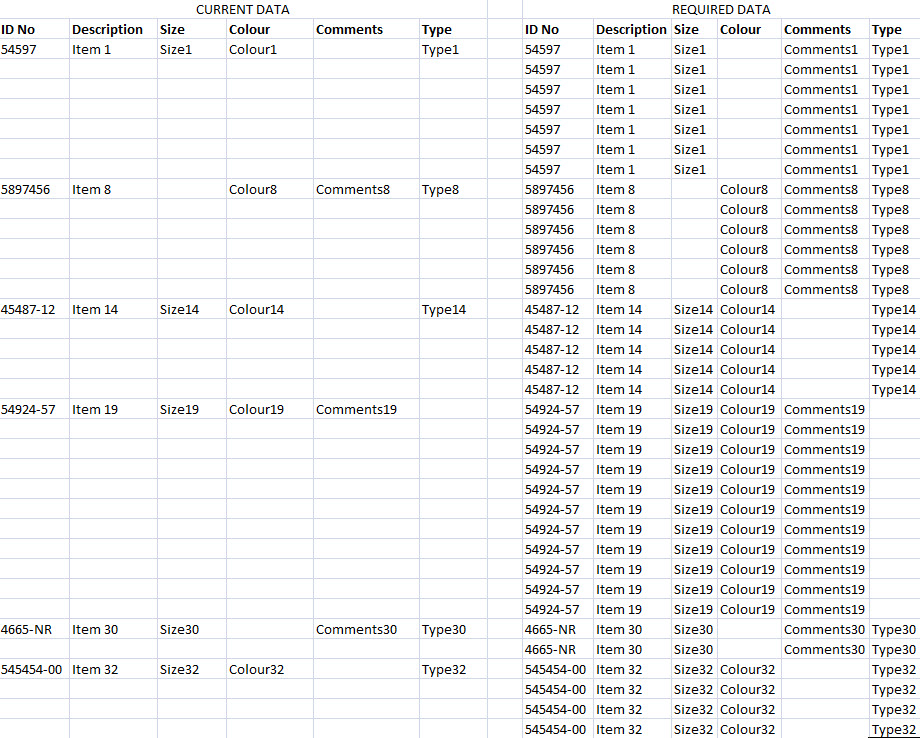 The number of blank rows vary between each product, I have about six thousand products over about 20,000 lines