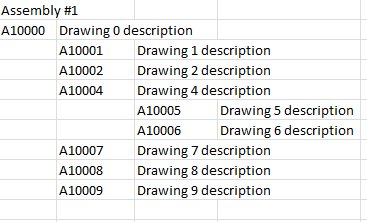 I'm trying to figure out a way to represent an assembly drawing list. I'd like to do it in the form of a tree view something like this: