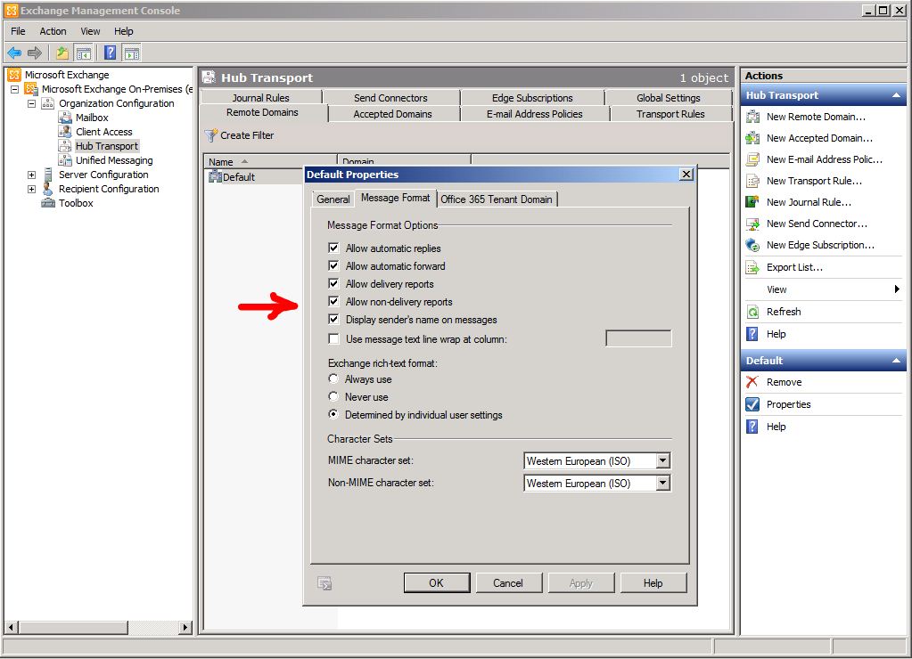 - I have checked the NDR settings from Hub Transport properties and NDR is active .