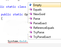 So when i try to use the code: Â I include the namespace, but when I type System.Guid, method IsNullorEmptyGuid is not available.