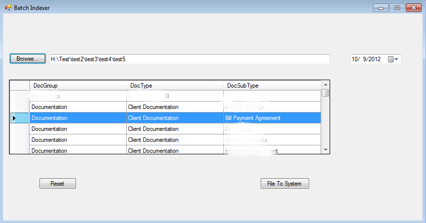 Next is what was selected in the grid from the DocGroup, DocType and DocSubType columns