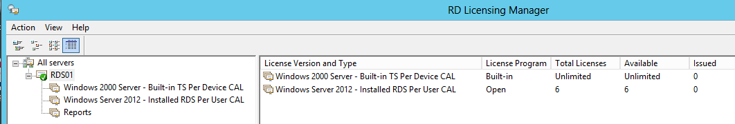 Everything (all RDS stuff) is on one server.Here is a screen shot of the RD Licensing Manager