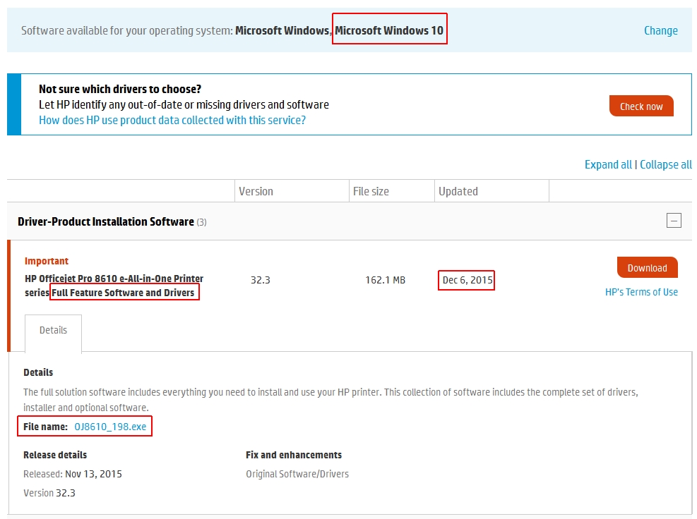 But those same drivers should be in the "Full Feature Software and Drivers" file, so I doubt it will help. One other thought — are you sure that you downloaded the correct bit-level (32 or 64) for your W10? Regards, Joe