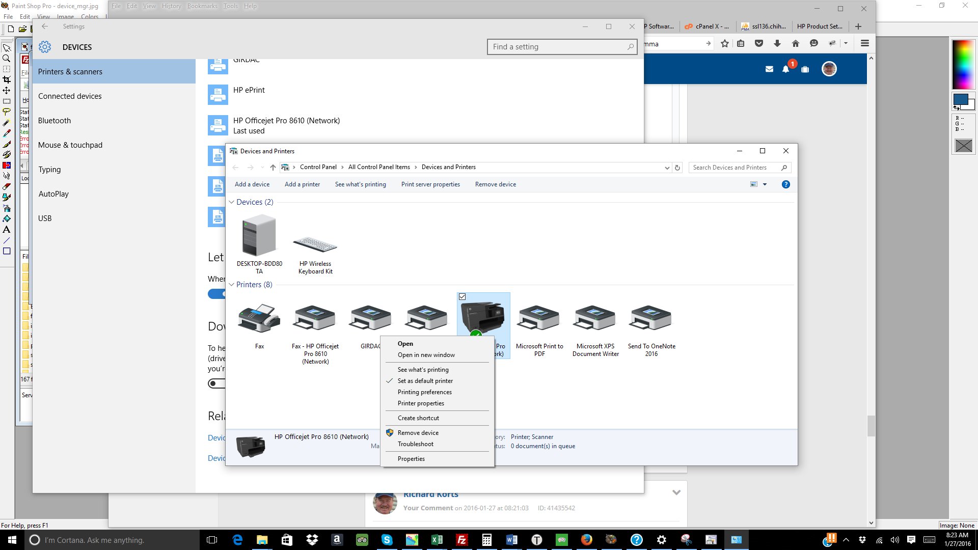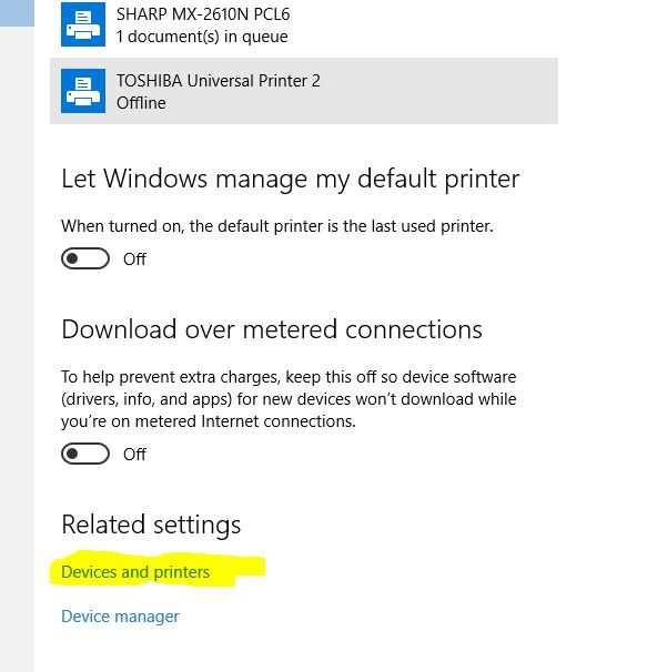 Scroll down to the bottom of that page, click on "devices and printers" under "related settings",