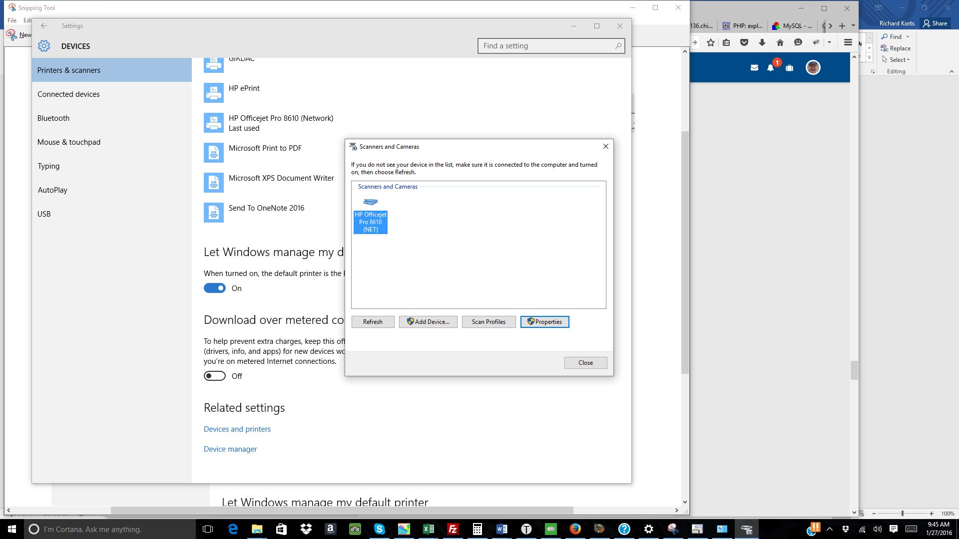 I ran the scanners & cameras thing, see attached, I clicked Add a Device, it gave the list at upper left, which does NOT include HP as a choice.