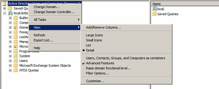 I've clicked on the root "Active Directory Users and Computers [servername]"but there's no view services option.