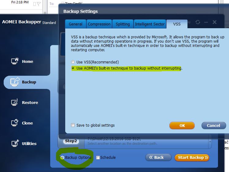 Since I already have AOMEI loaded on the laptop I will now try to do a backup and restore.