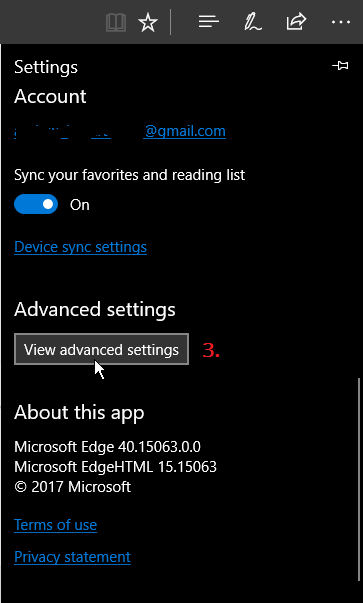 3. Click View advanced settings  (Scroll down if you can't see the View advanced settings option)