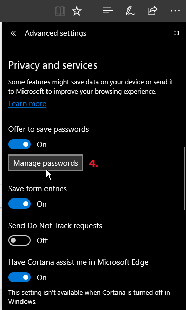 4. Click Manage passwords  (Scroll down if you can't see the Manage Passwords settings option)