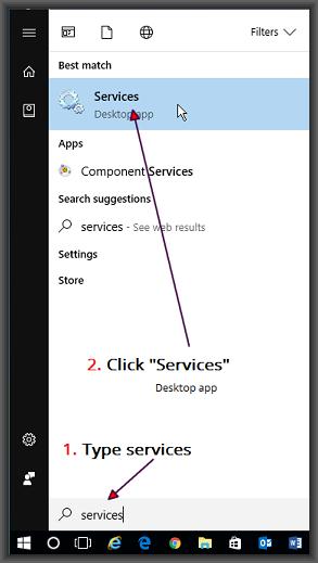 Steps 1. Â Press Widows Key and Type "services" to run the Desktop app as shown below