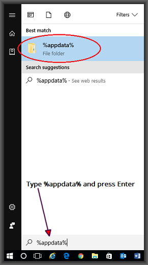 1.  Press your Windows Key and type  %appdata%  then press your Enter Key .. shown below