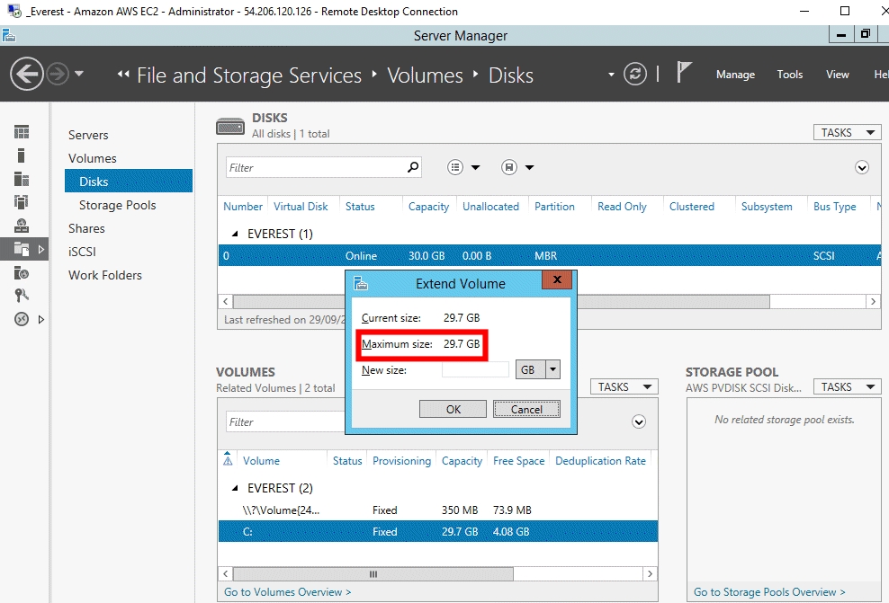 Attempting to increase size of Windows Server 2012 volume running on AWS EC2