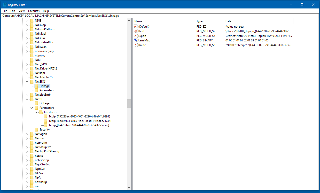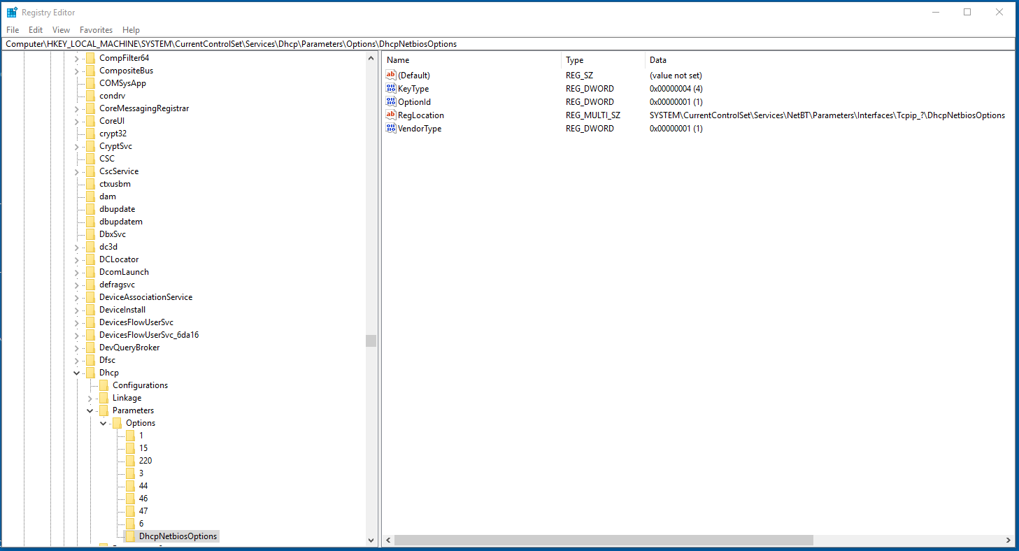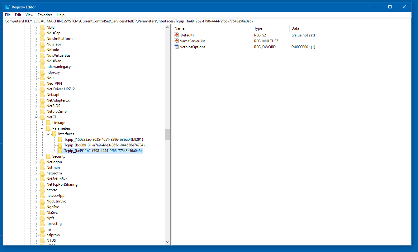 There has to be somewhere in the registry that is causing this computer to have the NetBIOS over tcpip turned off.