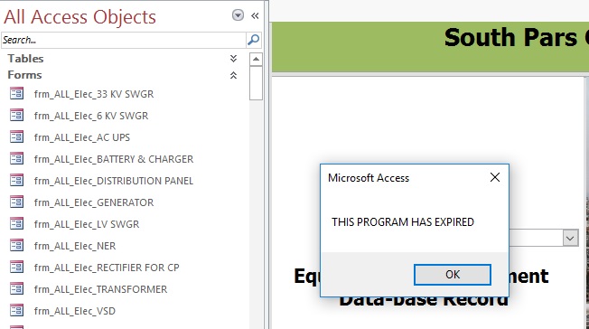 2 years ago i made a database with protected vba(visual basic for application). i put expire date in my DB.now its expired !