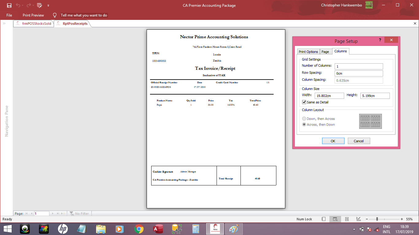 I have matched the report in design mode to the actual receipt, now I'm now waiting to hear from the users.