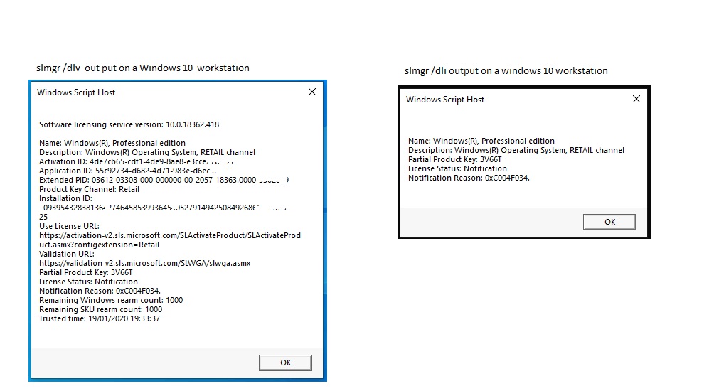 Please find the attached result of slmgr /dlv and slmgr /dli that i ran on one of the Windows 10 workstation.