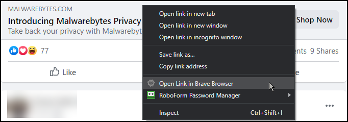 I mostly keep Google Chrome as my default browser, however, it would be particularly useful to be able to right-click a link and select the Brave browser to open links, due to its vastly superior built in Ad Blocker which does not trigger Adblocker warnings on most web sites.