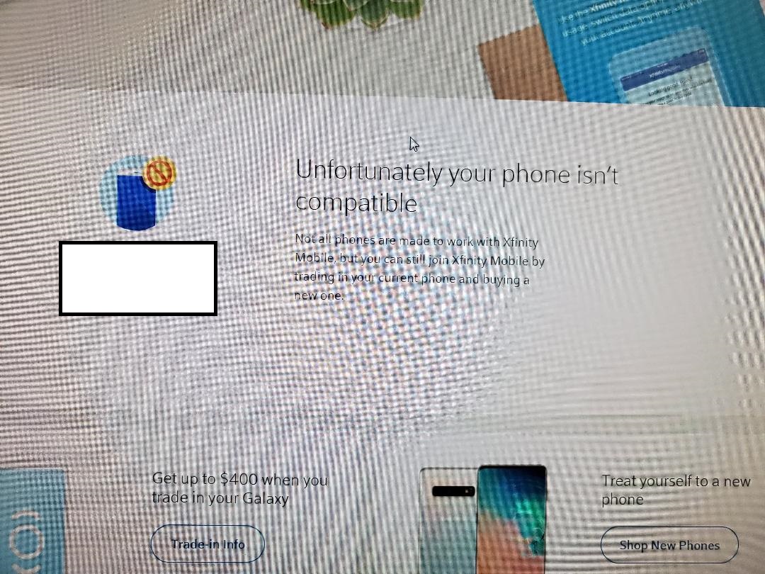 Has anyone ever seen the above msg ? We are trying to switch phone carriers and the agent with Xfinity kept getting the above popup msg. We were told a number of reasons why this could happen: "Phone is the wrong technology", "Phone has wrong antenna", Not compatible IMEI number.