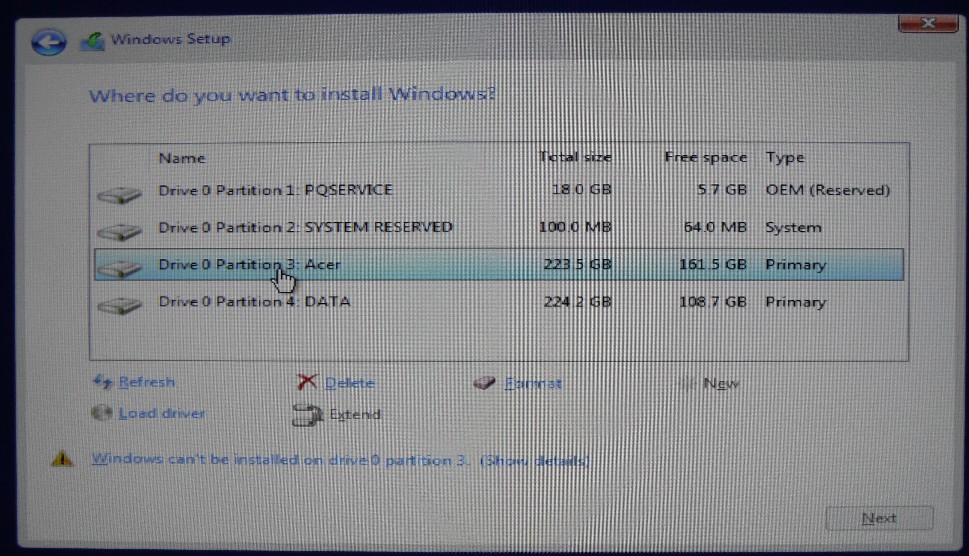 I do have the Product Key however as it was updated from win7 so doesn't have any CD or similar to reload windows from, someone suggested i download onto a USB installation media which after some messing about i did manage to get it to boot from, but when i got to the menu i tried several ways, i entered the Product Key (does it need an internet connection to make this work?) but i got stuck at a point where it asks what drive to install it on, i saw 4 poss locations, there seems to be a partition for PQservice? on the drive, anyway i selected the one that looked correct but it pops an error message saying it cant use that drive, so i got stuck there,, maybe this option is for a empty hard drive?