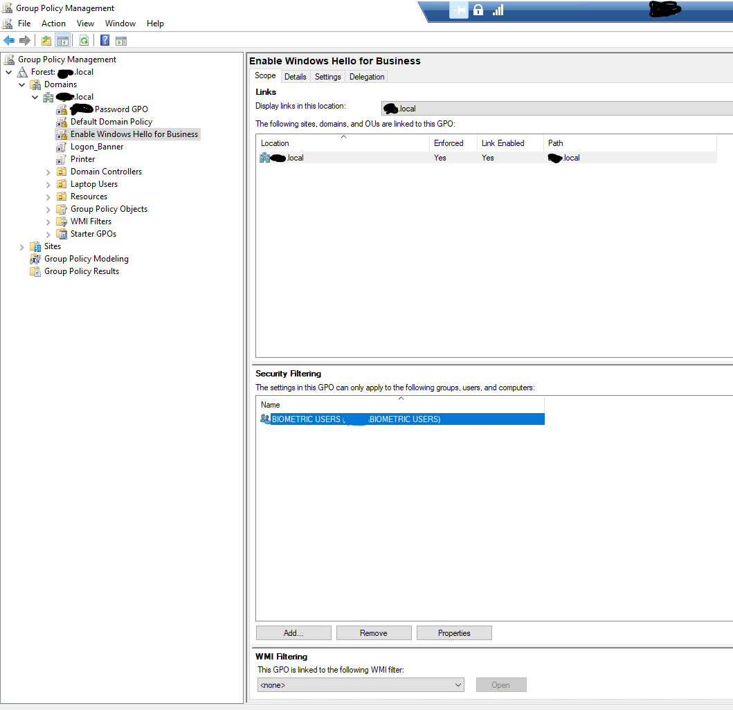 | Allow domain users to log on using biometrics | Enabled | |