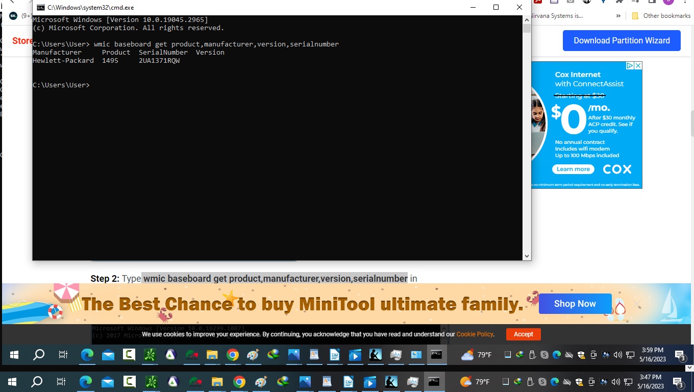 Sorry but I'm seeing the following serial #2UA1371RQW on the output from WMIC.... You're getting (Product Number :SM697UP#ABA)